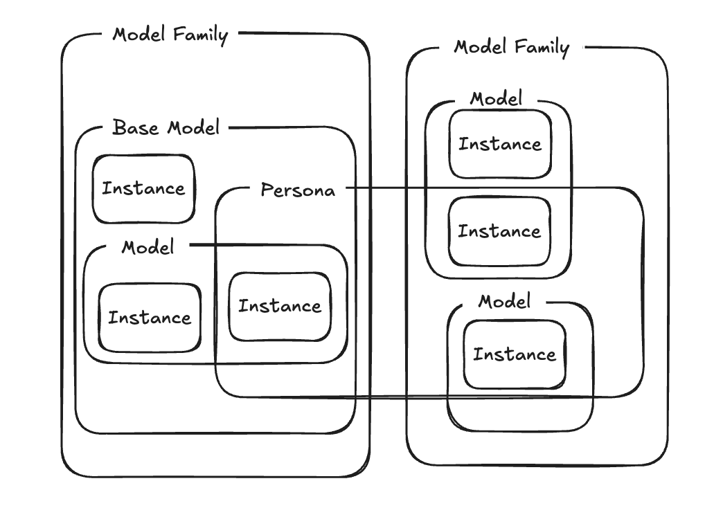 - A collection of instances manifesting some persona: similar behavioral patterns implemented on different weights